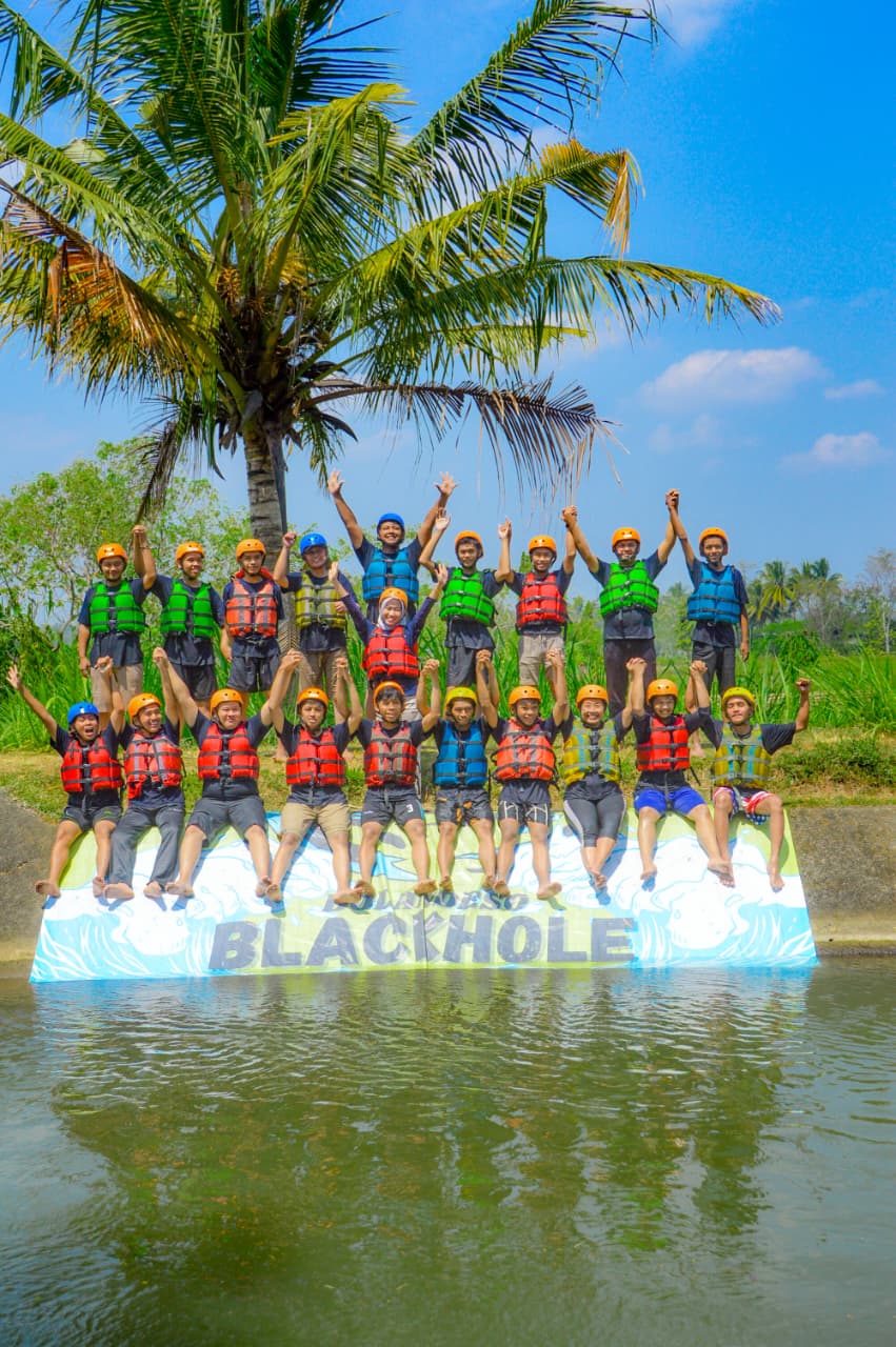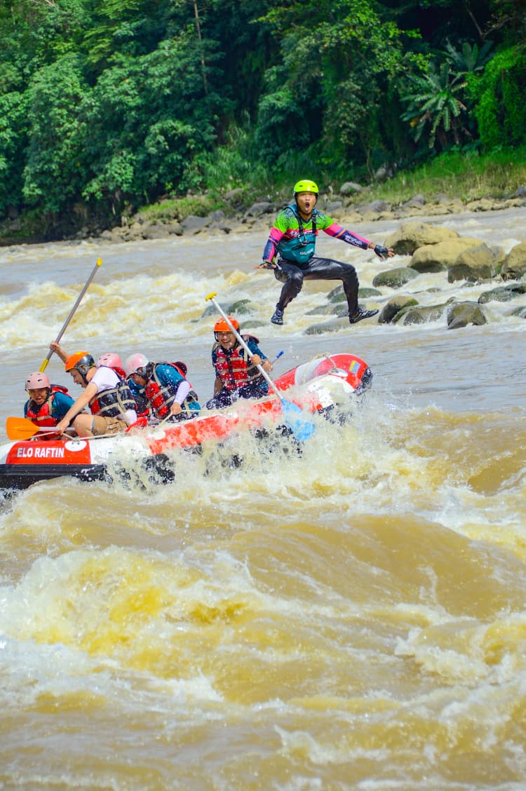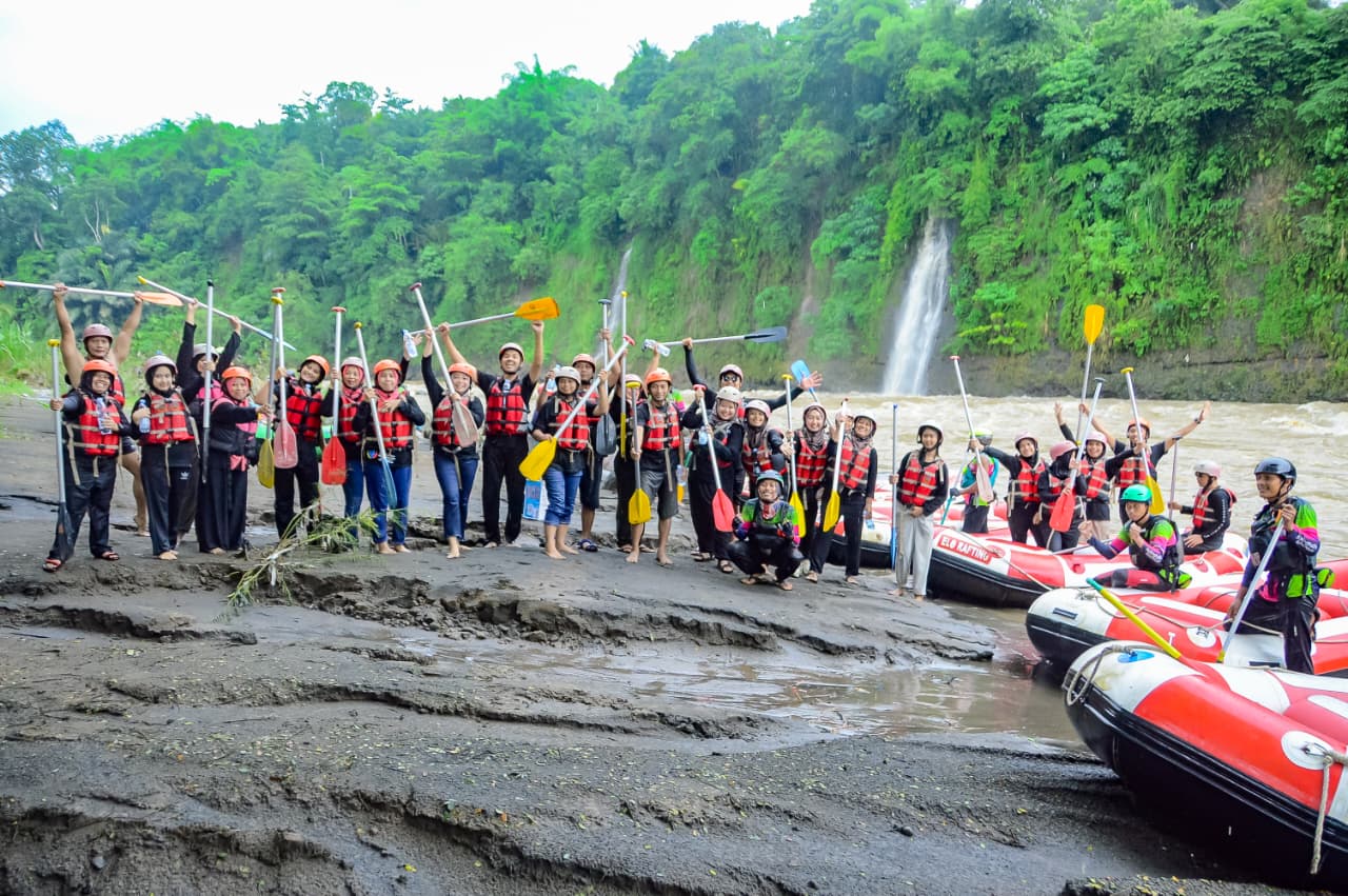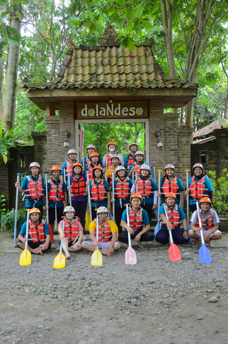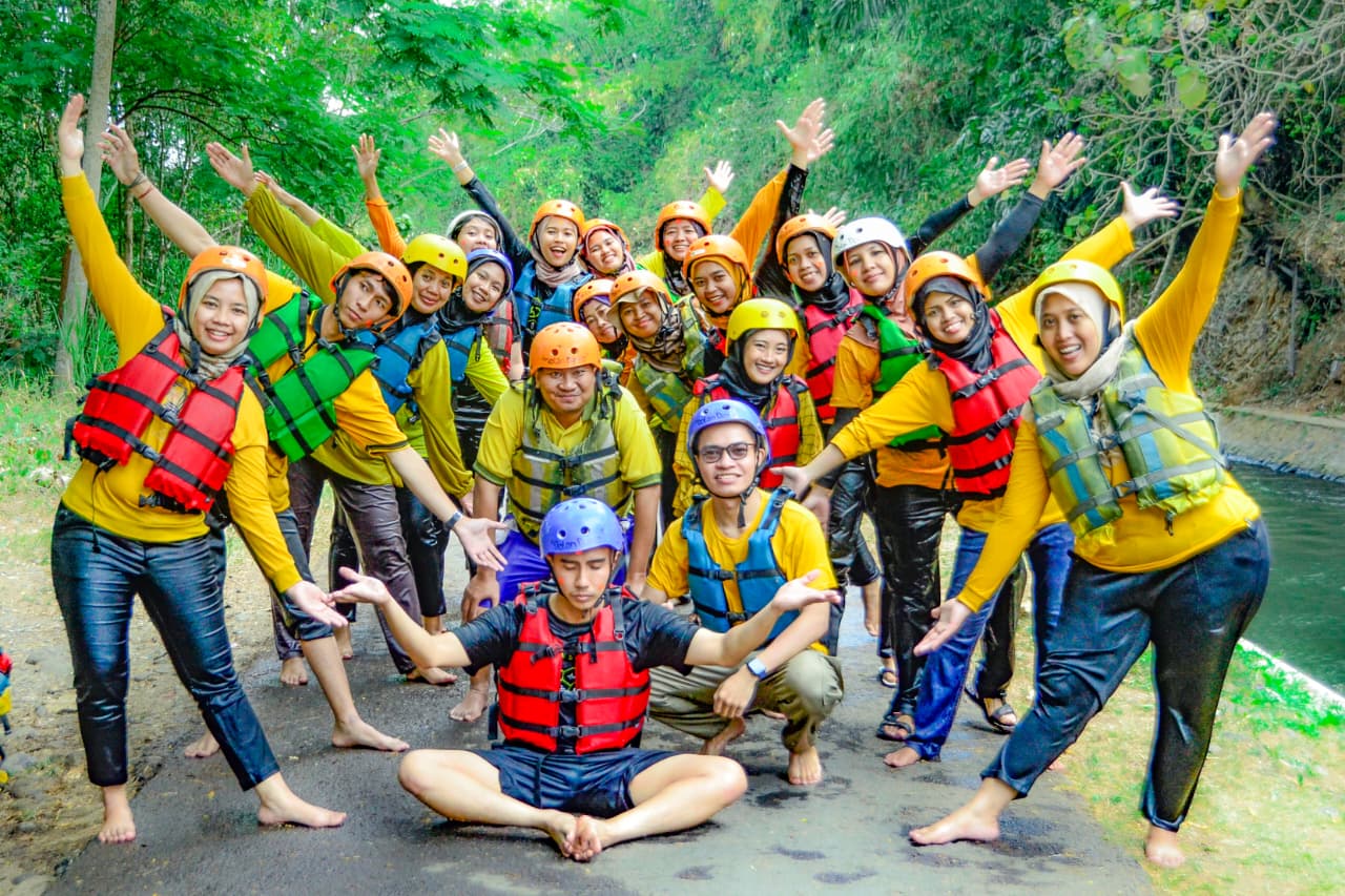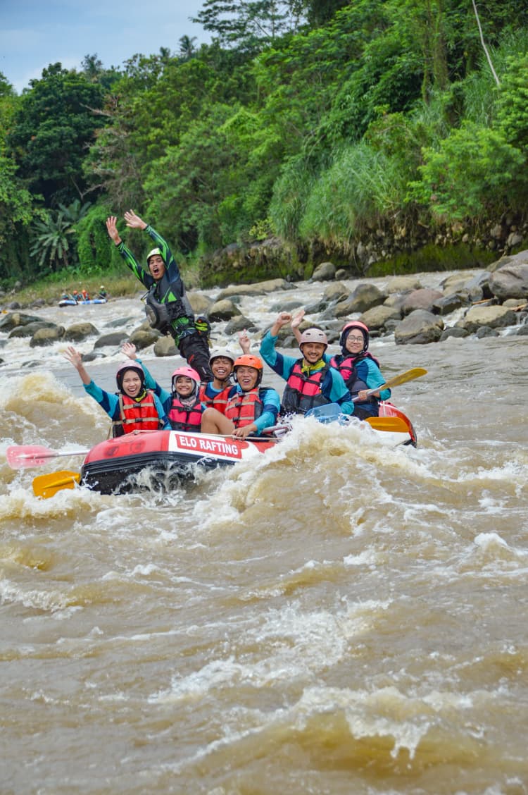 Aktifitas mengarungi sungai progo dengan perahu untuk kategori usia dewasa