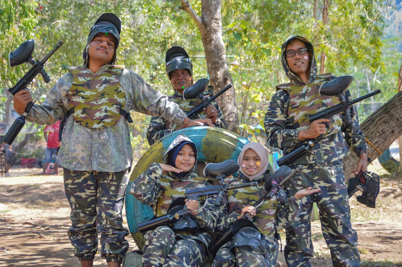 Aktifitas permainan tembak - menembak dengan peluru yang aman dan di fasilitasi APD