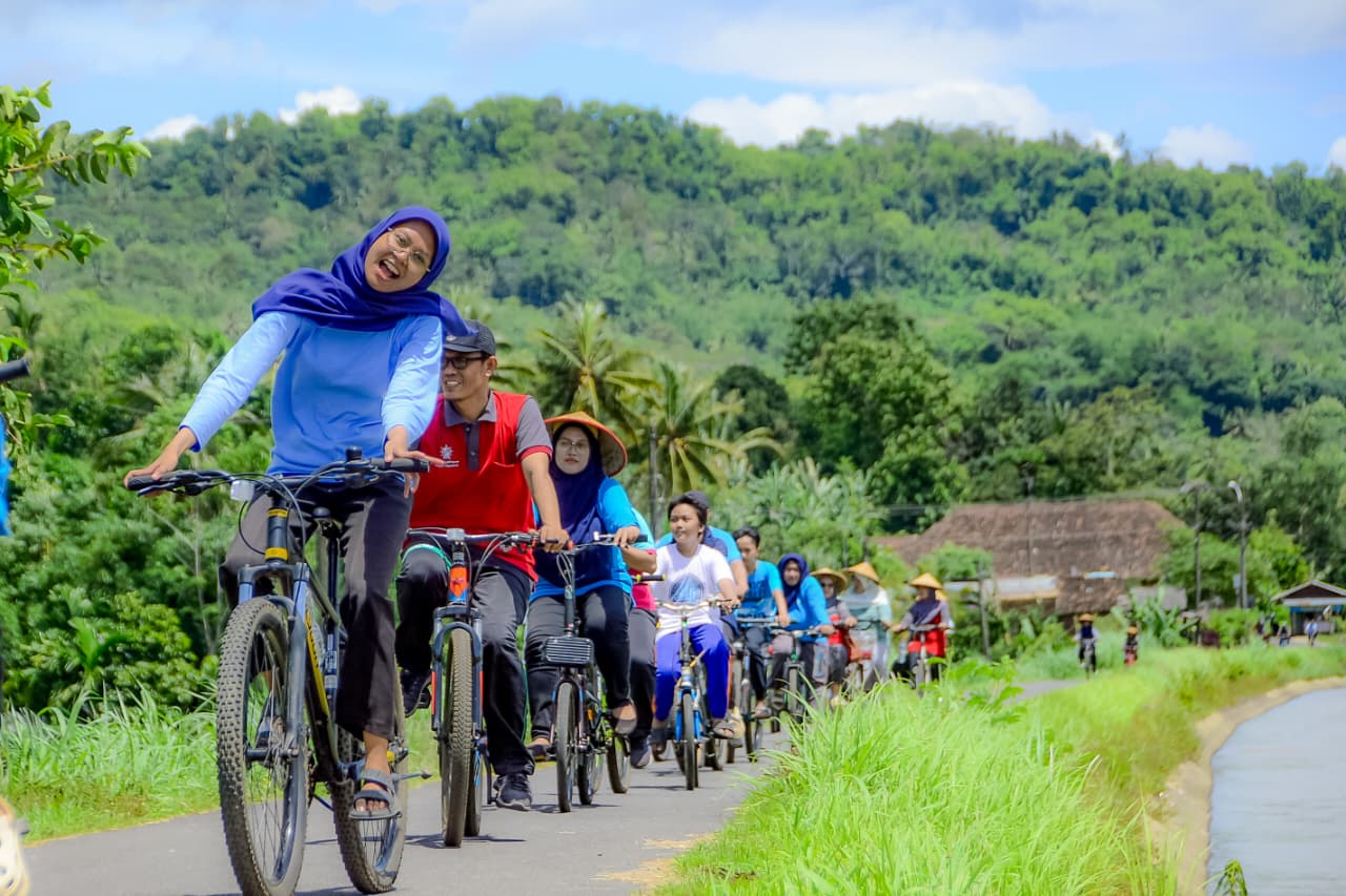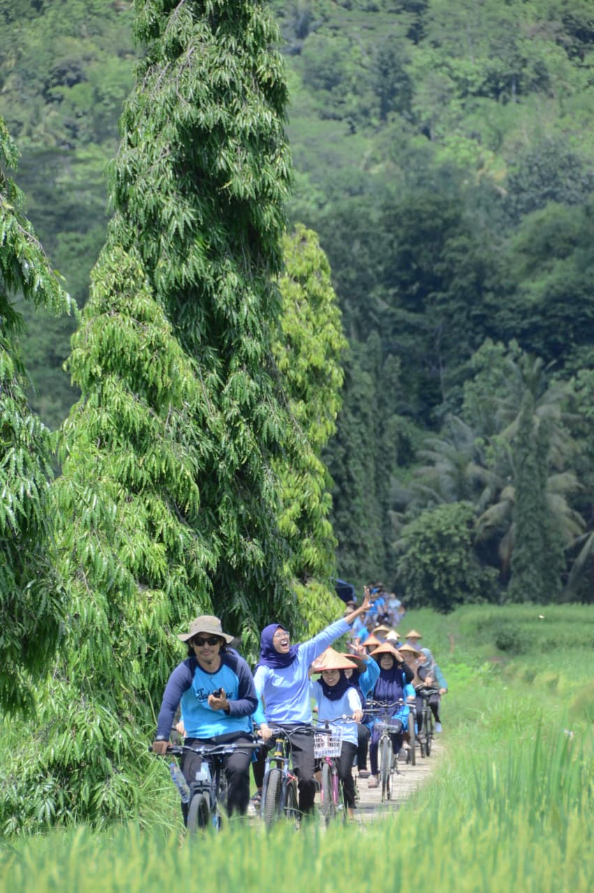 Kegiatan bersepeda menyusuri jalanan khas pedesaan